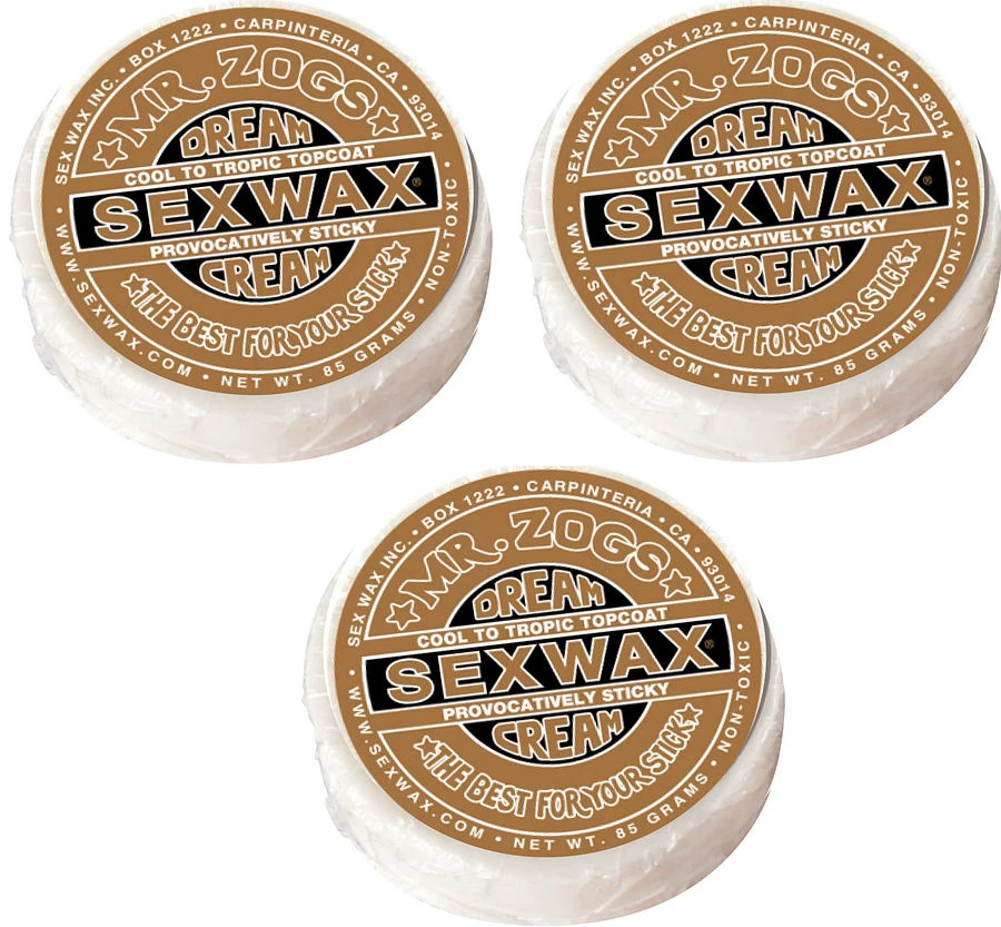 Mr. Zogs Sex Wax Dream Cream is the latest in topcoat technology. Zogs suggests that this be used sparingly, and by experienced surfers only. This Bronze label Dream Cream is good for water temps between 56°F to 84°F (13C° to 29C°), and is recommended to be used over the appropriate Quick Humps Base. Store in a wax container or leak proof bag to avoid unwanted mess.